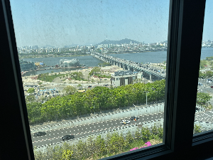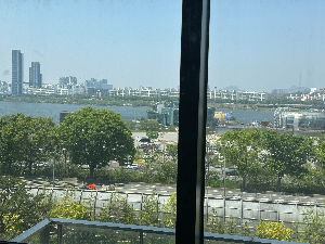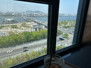한강이 탁 트여 보이는 스카이라운지 느낌의 공간! 조용하고 넓고, 통창 너머로 들어오는 빛이 진짜 좋아요.